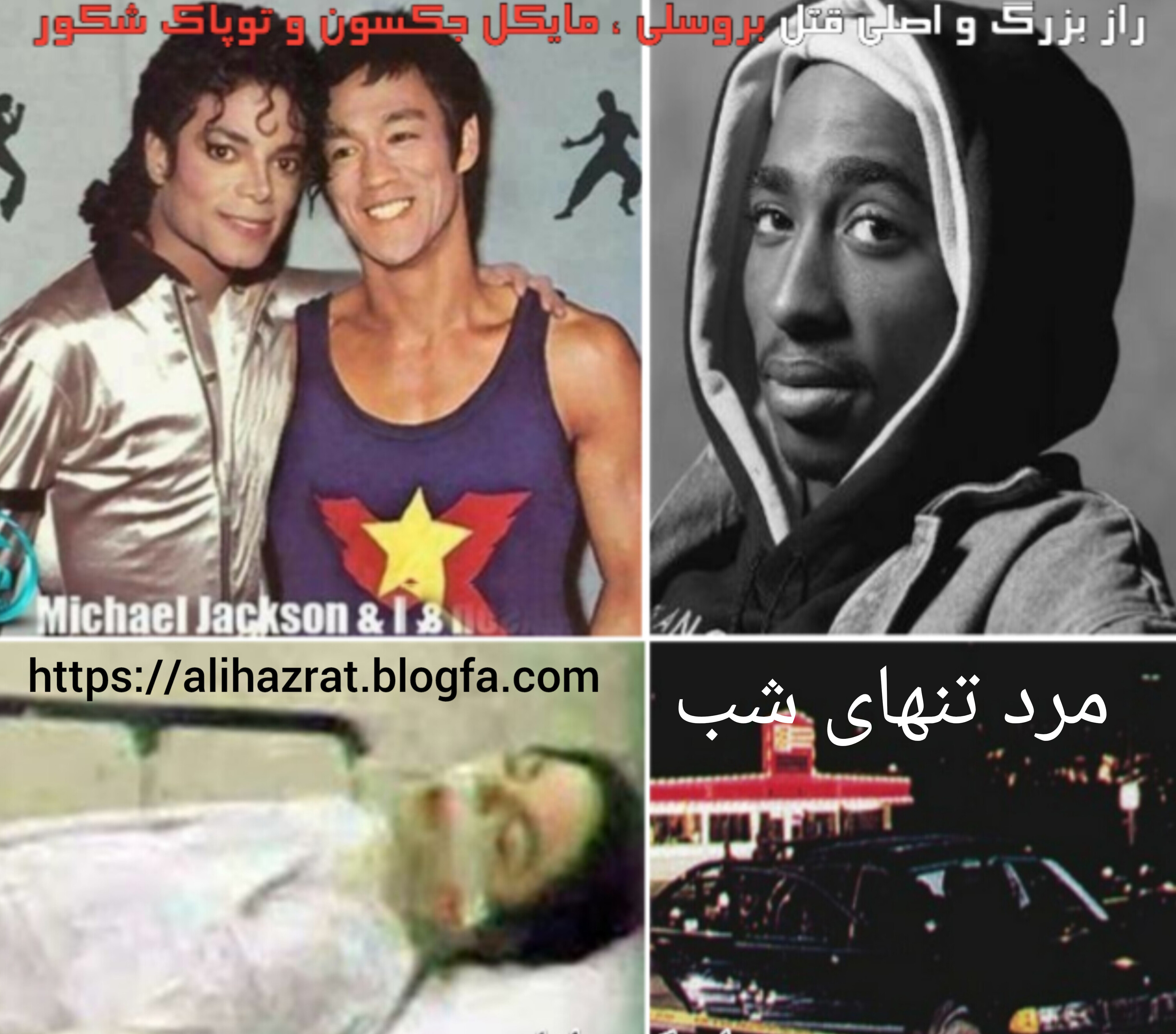 چیزی که باعث دوستی و علاقه بین مایکل جکسون، بروسلی و توپاک شکور گردید، قرار داشتن در یک جبهه متحد بود، یعنی جبهه ای که بر علیه شبکه های ماسونی و ایلومناتی بود، مایکل جکسون شخصیتی داشت پر از انسانیت، بخشش، ایمان، تواضع، ادب و محبت، و اینها بارزترین و مهمترین ویژگی در او بودند، نشان داد که میتوان در غرب فاسد و کثیف زندگی کرد، ولی آلوده نشد، با وجود درآمد بالا، کمک هایی که به خیریه ها و بیمارستان ها میکرد در حدی بود که موقع مرگش چیزی نداشت، هنوز هم شایعه سازی بعد از مرگش ادامه دارد. او در حالیکه مالک نیمی از شرکت سونی بود، تحت فشار قرار گرفت تا به عضویت شبکه های ایلومیناتی در آید، اما آنان باور نمیکردند که مایکل آنقدر آزاده باشد که قید اینهمه ثروت و شهرت را بزند، و از اینجا شروع به ضدیت با ایلومیناتی ها بطور مستقیم از طریق موسیقی و سخنرانی کرد، تا اینکه اتهام کودک آزاری به او وارد شد و ۶۰ بار محاکمه گردید، که بی فایده بود و دادگاه و پلیس اف بی آی آمریکا، کوچکترین مدرکی برای اثبات این اتهامات پیدا نکردند، ولی مایکل خورد شد و بارها در جلوی دوربین به گریه افتاد ولی هرگز تسلیم نشد. بعد ها او پر هزینه ترین موزیک ویدیوی جهان را که تا کنون ساخته شده را ساخت، شاهکاری که در آن اشاره به این افراد کرد، میگفت: نمیتونی من رو از بین ببری، از این موضوع عصبانی هستی و میسوزی. مایکل جکسون فاش کرد که اخبار روز و رسانه و کتابهای تاریخ توسط این افراد مرموزی تحریف شده و، کذب و دروغی بیش نیستند. صریحاً اعلام کرد: مدیر شرکت سونی یک شیطان است. چرا که اکنون میدانست که این مدیر، از مهرههای ماسونیست. و در مقابل تعجب جمعیت گفت: کمپانی سونی موسیقی را میبلعد و نابود میکند، ماسونها بعد از ترور او این شایعه را پخش کردند و گفتند: او هنوز هم از ماست و مخفی شده و در آینده به دستور ما برمیگردد. مدتی بعد یک رسانه یهودی در آلمان فیلمی جعلی و کوتاه مبنی بر زنده بودن مایکل پخش کرد اما با جنجالی شدن موضوع، اعلام کردند که ما این شایعه را پخش کردیم تا واکنش مردم در مقابل شایعات را ارزیابی کنیم. رسماً اعلام کردند که تمام این تصاویر جعلی بوده. مایکل جکسون در تمام سالهای پایانی عمر خود را تلاش کرد تا با رقص و خوانندگی، با کلام و زبان اشاره بصورت رمزی، اسرار پشت پرده ماسون را فاش کند، گرچه هنوز هیچکدام از آثارش رمزگشایی نشده، مثلاً در آثارش اشاره میکند که مخفیانه مسلمان شده، بروسلی هم در تمام آثارش با ماسون مبارزه میکند نه کسی دیگر، متاسفانه بخاطر تیغ سانسور، این محتوا در آثارش کمرنگ شده و مخاطب متوجه نمیشود، توپاک شکور هم با رپ، پیاپی به ماسون حمله کرد تا نهایتاً به ضرب چهار گلوله ترور گردید.