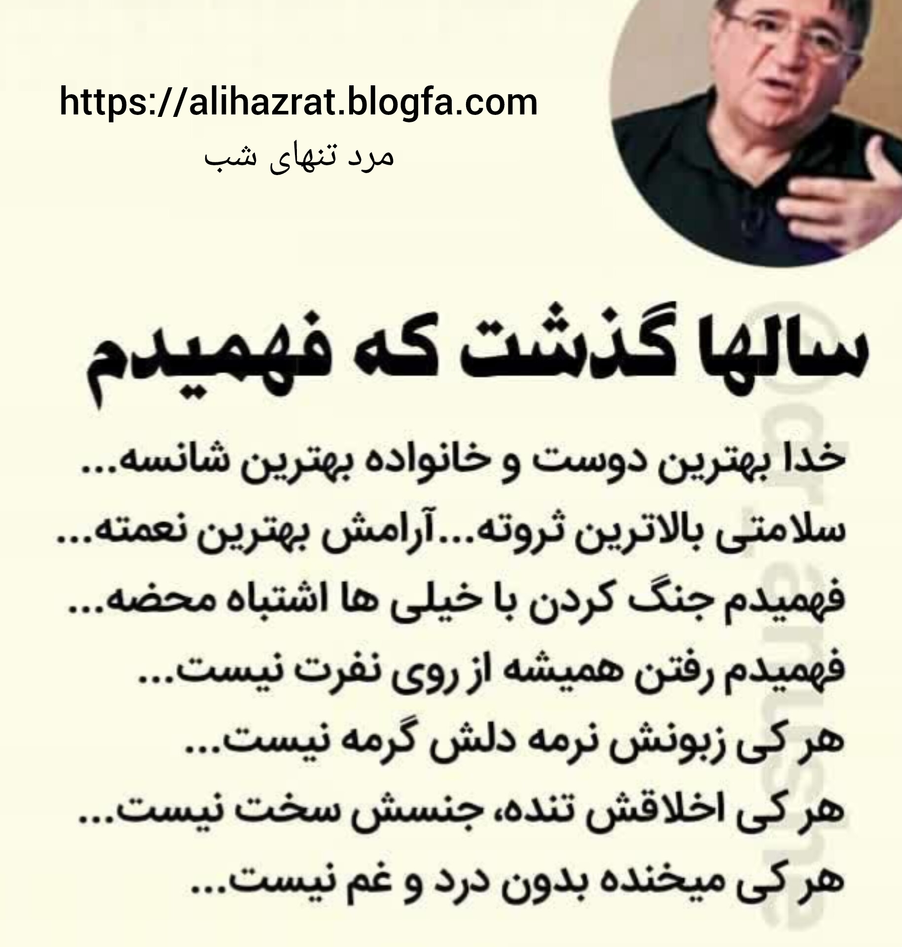 در نوجوانی یاد گرفتم کار خلاف فایده نداره، حتی اگه با مهارت باشه. در جوانی فهمیدم قدرت، جاذبه ی مرد است و جاذبه، قدرت زن. در میانسالی یاد گرفتم رمزِ (خوشبخت زیستن) در انجام کاری نیست که دوستش داریم. برعکس در دوست داشتنِ کاریست که انجامش میدهیم. در سالهای بعد فهمیدم که تصمیمهای کوچک را باید با مغز و تصمیمهای بزرگ را با قلب گرفت. در سالهای بعد یاد گرفتم بدون عشق میشه ایثار کرد ولی بدون ایثار هرگز نمیشه عشق ورزید. در سالهای بعد فهمیدم که دوست داشته شدن و محبت دیگران به انسان، بزرگ ترین لذتِ دنیاست. و امروز تازه فهمیدم که زندگی زیباست. باید دنیا را کمی بهتر از آنچه تحویل گرفته ایم تحویل دهیم. خواه با فرزندی نمونه. خواه با رفتاری خوب. خواه با کمی مهربانی. و اینکه بدانیم حتی فقط یک نفر با بودن تو ساده تر نفس کشیده است. این یعنی ما خوب زندگی کرده ایم.